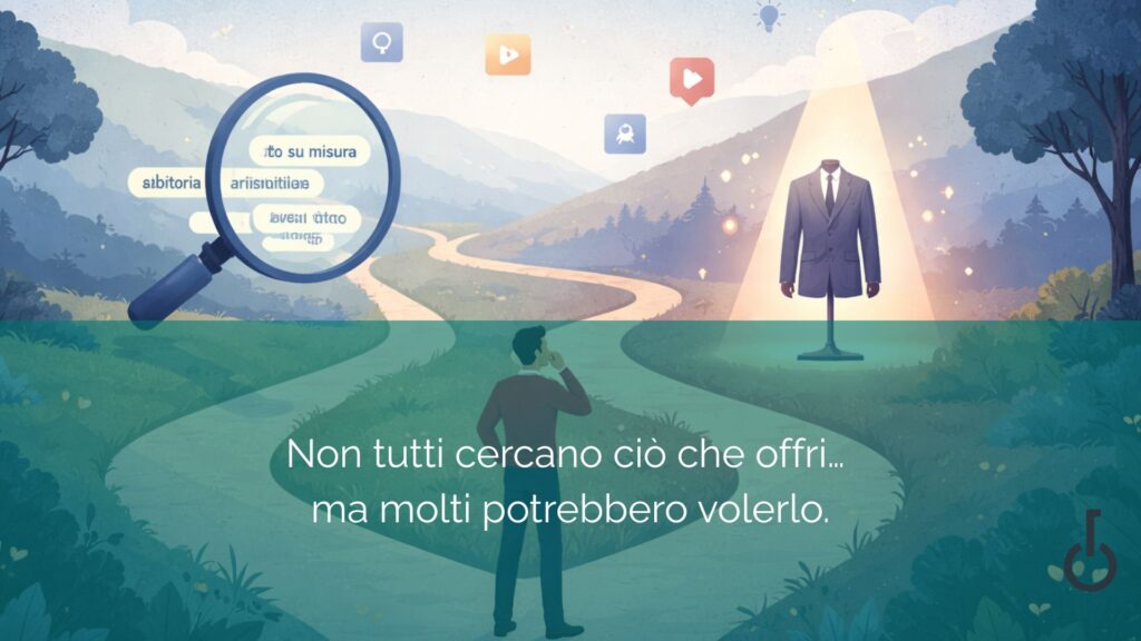 Ma qualcuno sta cercando “abito su misura”, “abito elegante uomo artigianale”, “vestito cerimonia sartoriale”. Ecco: quelle ricerche generiche sono il ponte che puoi costruire per avvicinarti a un pubblico che non sa ancora chi sei, ma sa già cosa sta cercando.