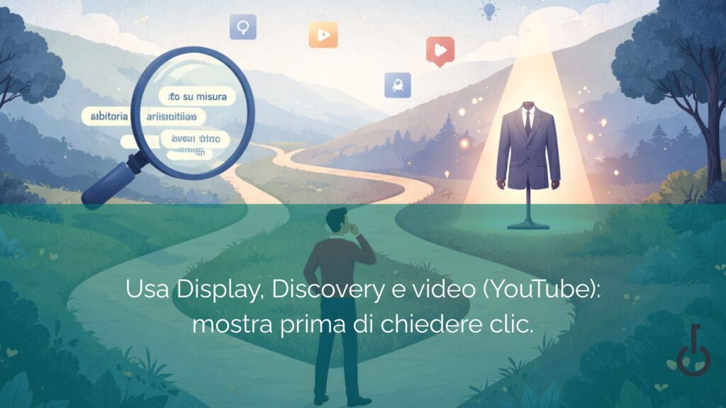 In questi casi, entrano in campo le campagne di Demand Generation: una combinazione potente di formati visivi, emozionali, immersivi. Display, Discovery, YouTube, Performance Max. Non intercettano l’intento diretto, ma lavorano sull’interesse, sulla curiosità, sulla ripetizione.